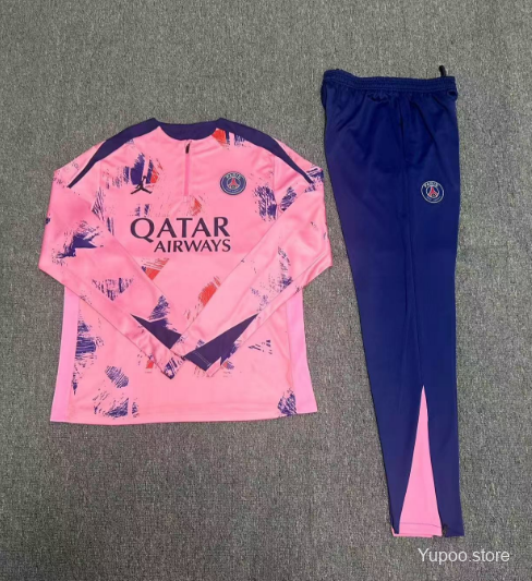 24/25 Kids PSG Pink Half Zipper Jacket+Long Pants