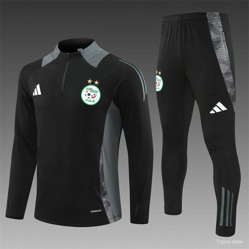 2024 Algeria Black Half Zipper Jacket+Long Pants