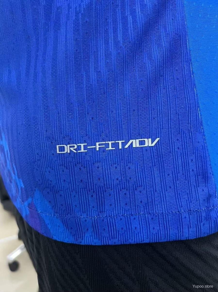 Player Version 2025 Brazil Away Blue Long Sleeve Jersey