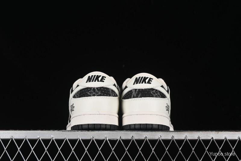 Nike SB Dunk Low LV Collaboration - Beige Black Printed Denim Anniversary High-End Custom Low-Top Casual Skate Shoes - XB3802-357
