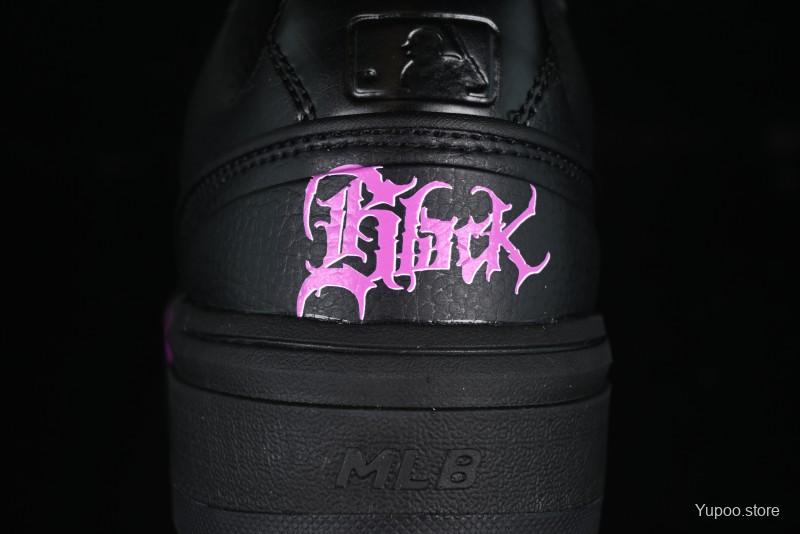 NY Yankees Black Leather Sneakers with Bold Pink Logo