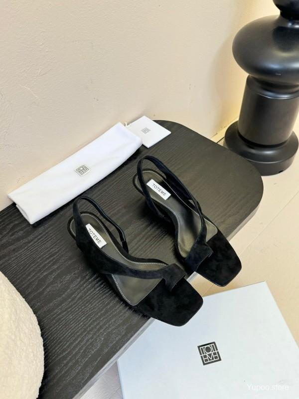 2025 Women Toteme Black Suede Slingback Sandals