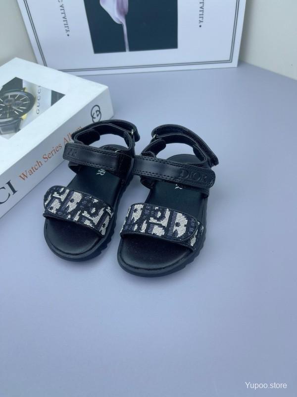 2025 Kids Dior Black Fabric Leather Sandals