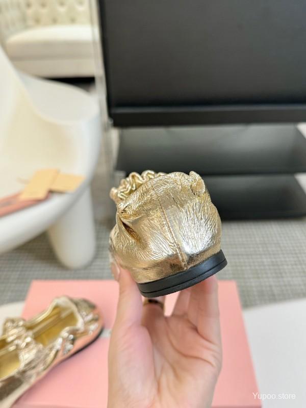 2025 Women Miu Miu Gold Leather Ballet Flats