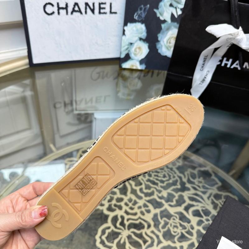 2025 Women Chanel Black Canvas Espadrille Sequins Mule