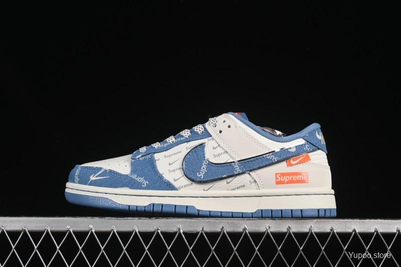 Nike SB Dunk Low Supreme Collaboration Blue Denim Anniversary High-End Custom Low-Top Casual Skate Shoes - SC9207-416