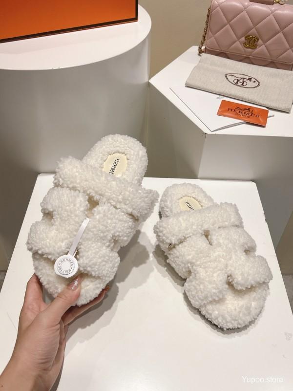 H Love Second Uncle Full Fur Slides Grain Fur Style - LY00300