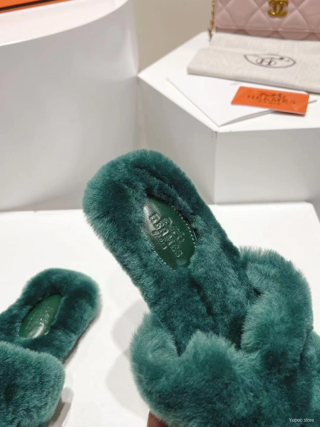 H Home Love Drag Autumn Winter Flat Wool Slippers - 2025SS