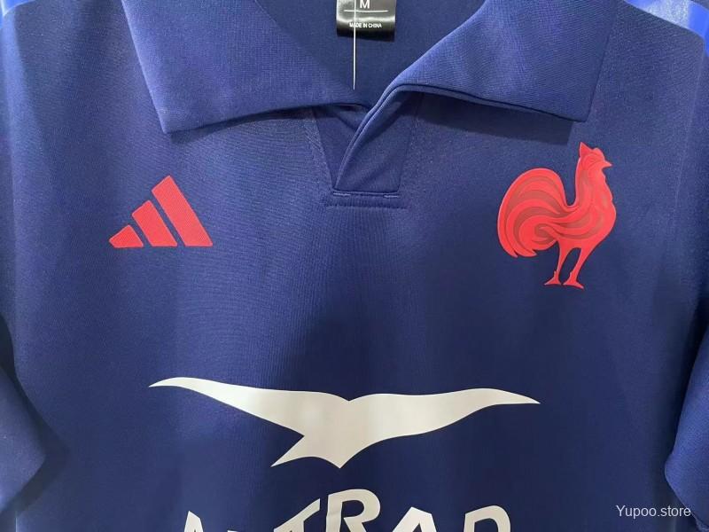 2025 France Navy Blue with Tricolor Stripes Home Jersey