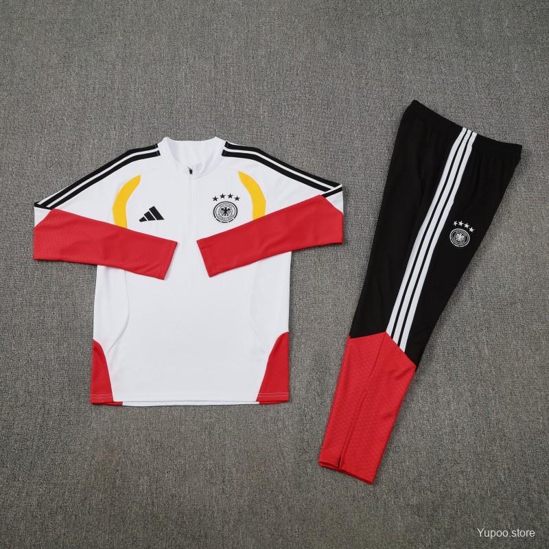 26/27 Germany White Half Zipper Jacket Tracksuit + Long Pants