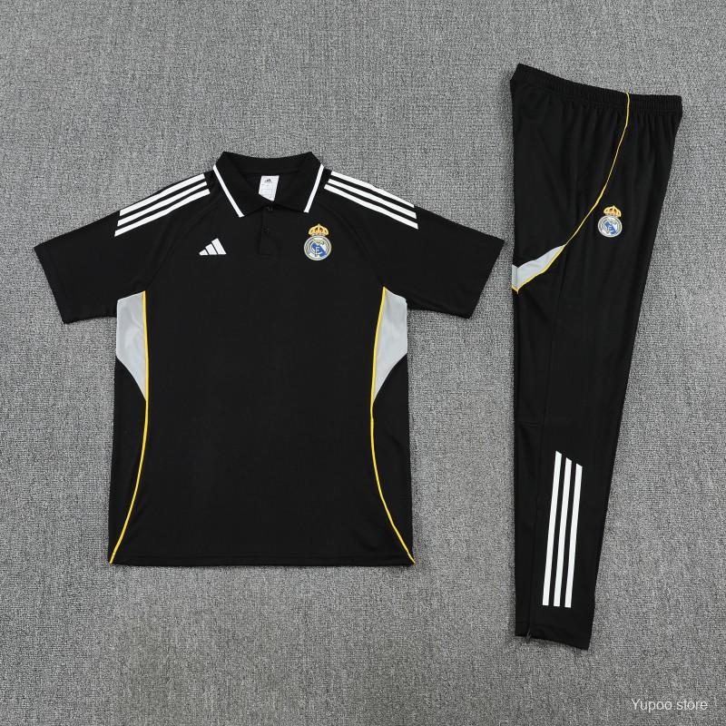 26/27 Real Madrid Black Polo Training Shirt + Long Pants Tracksuit