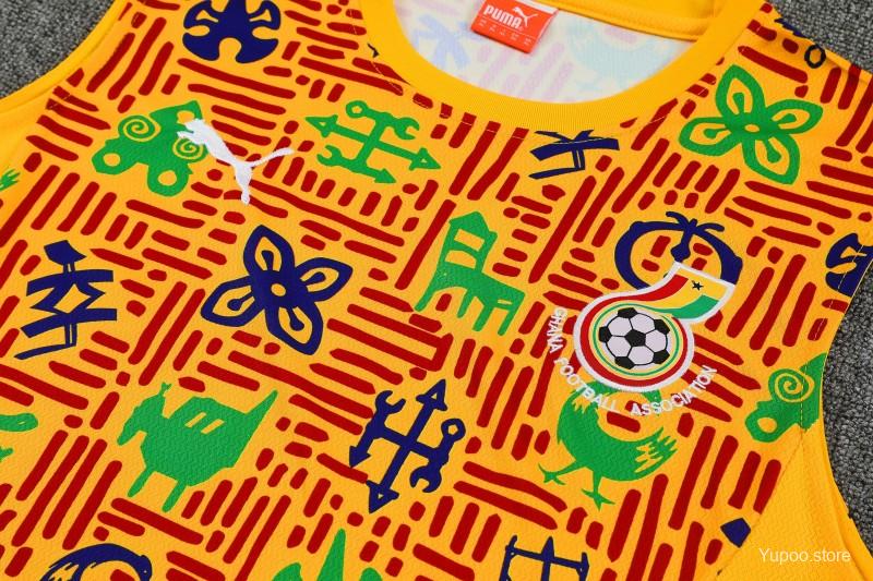 25/26 Ghana Yellow Adinkra Symbol Print Sleeveless Training Suit + Shorts